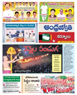 Andhrajyothi Epaper Today Kurnool - Andhra jyothi newspaper published from :hyderabad, rajamundry, karimnagar, guntur, adilabad, vishakapatnam, vijayawada, tirupati, anantapur, suryapet, nellur, srikakulam, kurnool. Andhrajyothi Epaper Today Kurnool - It is edited by k.