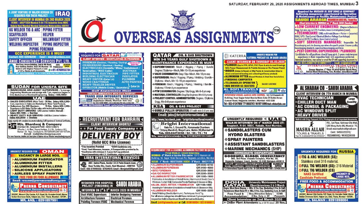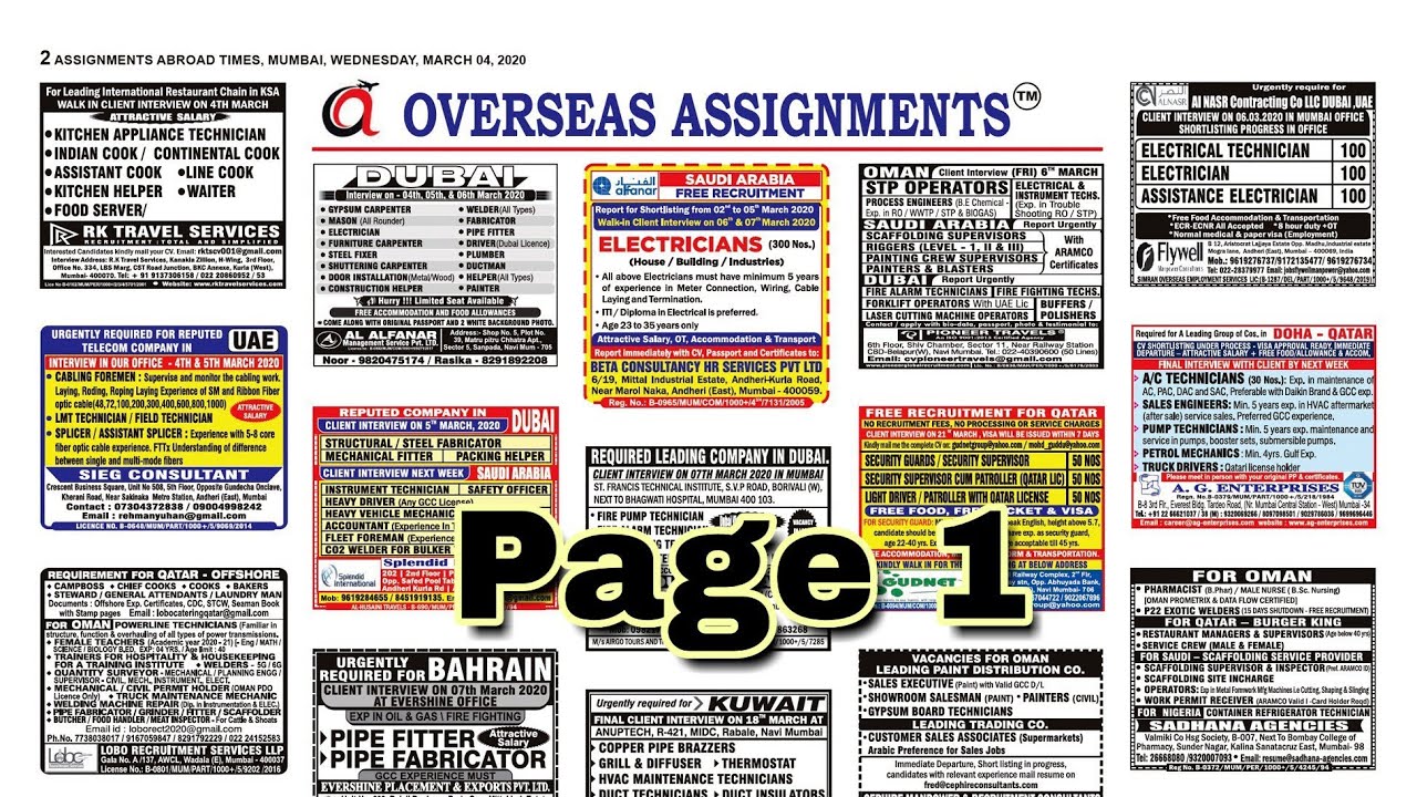 Assignment Abroad Times Mumbai / Abroad jobs newspaper today, gulf jobs newspaper today, overseas assignment abroad times today #abroadjobs. Assignment Abroad Times Mumbai : Bazmi tuyona қadami қurbon 2019.
