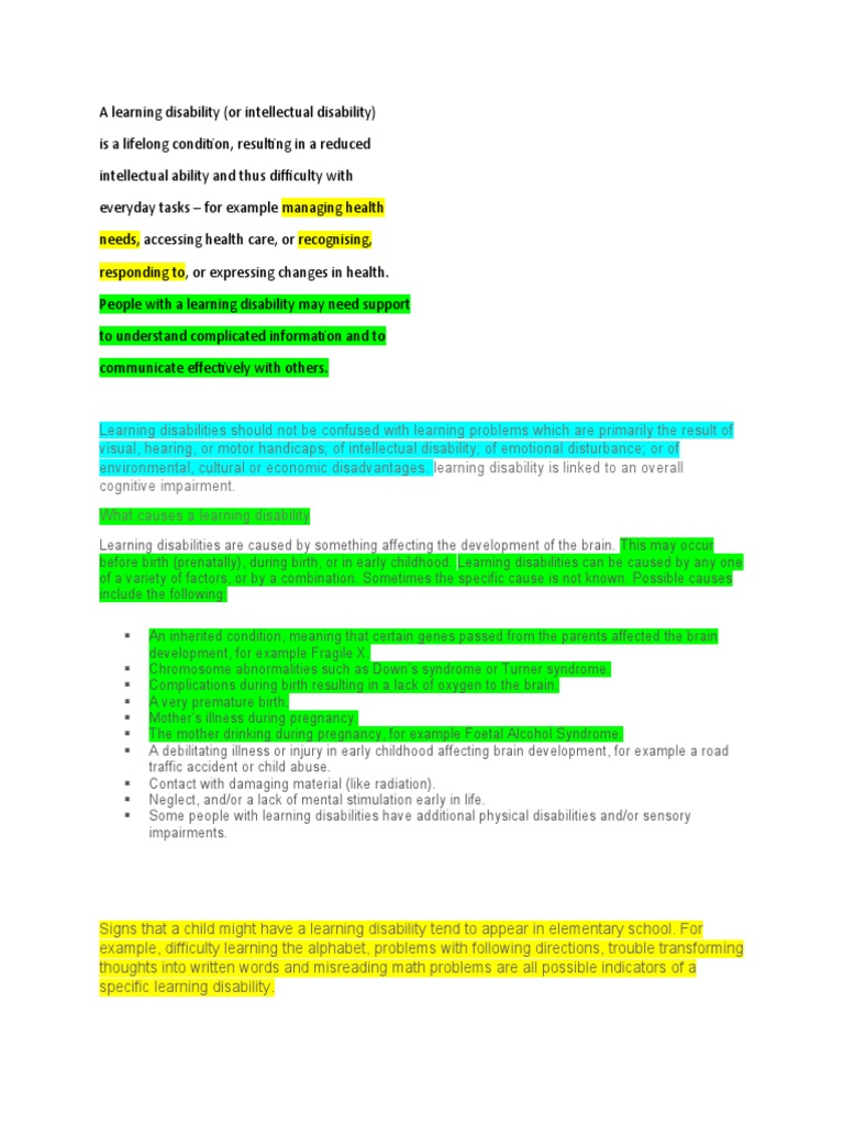 Learning Disabilities - A learning disability is not a problem with intelligence simply put, children and adults with learning disabilities see, hear, and understand things differently.