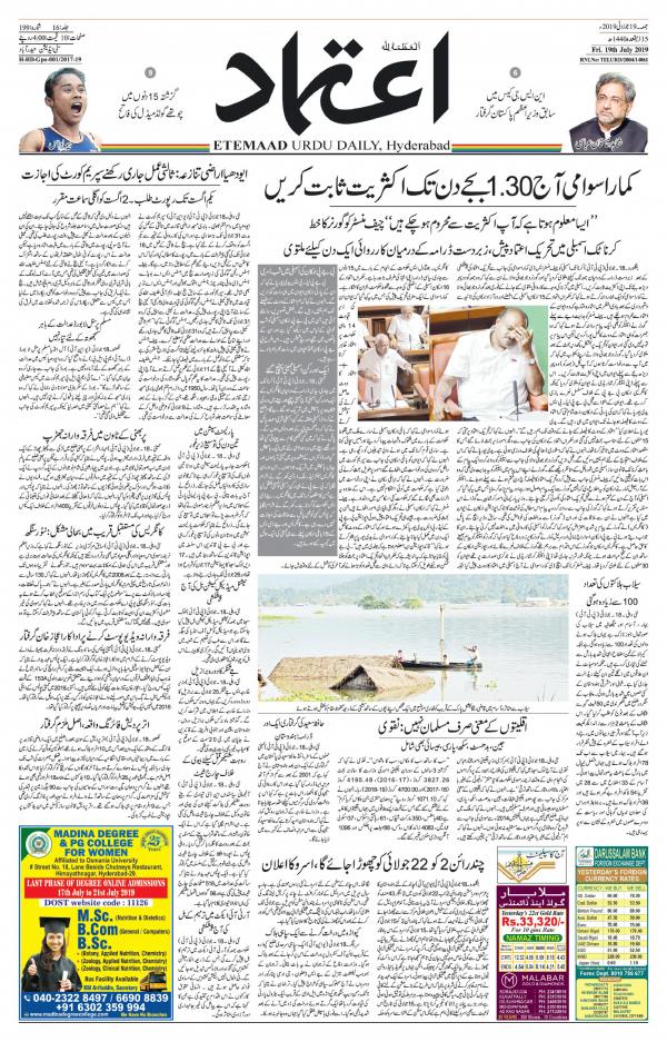 Epaper Etemaad Urdu Daily From Hyderabad Is Very Popular Urdu Daily Newspaper Collection Urdu Newspapers - Etemaad daily provides english online latest news from world, india, hyderabad of business, sports, cricket, entertainment, lifestyle, health, crime, politics etc.