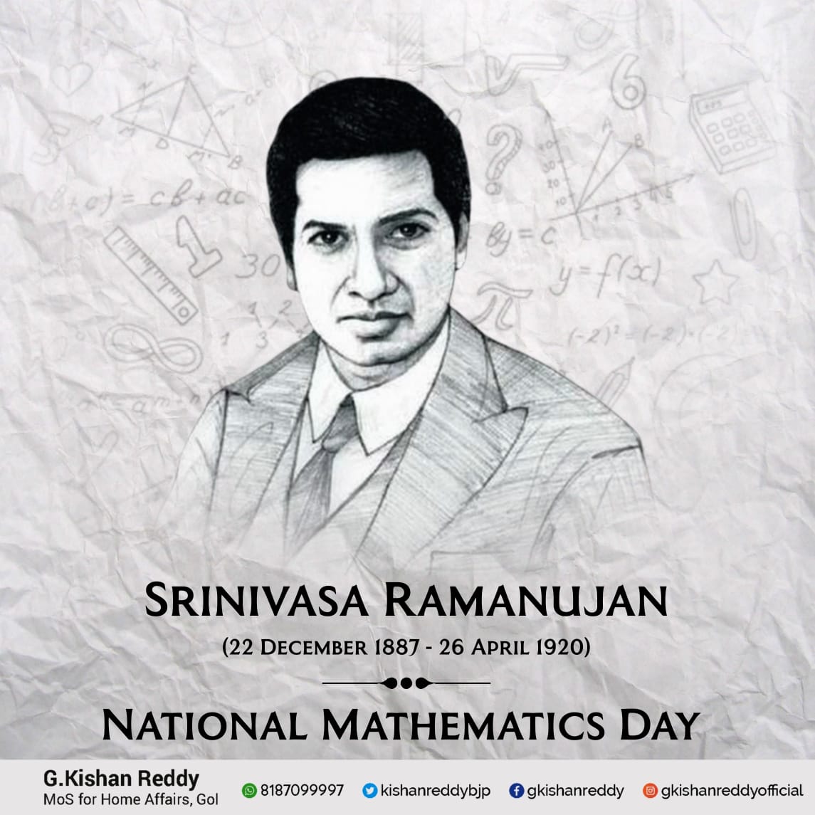 G Kishan Reddy Auf Twitter Remembering One Of India S Brightest Minds And Mathematics Prodigy Shri Srinivasa Ramanujan On His Birth Anniversary His Contribution Towards The Evolution Of Mathematics Especially His Work With - Choose from 360+ national day posters graphic resources and download in the form of png, eps, ai or psd.